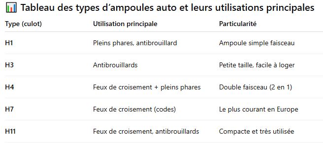 1️⃣ Vérifiez sur votre ampoule actuelle : le type (H1, H4, H7, H11…) est indiqué directement.