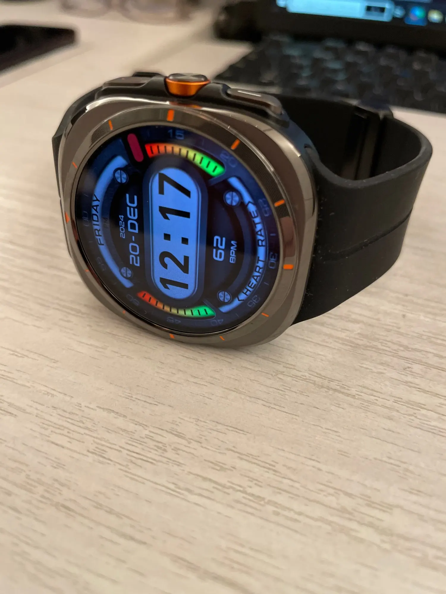 Watch est comme décrit, avec un bracelet orange, mais ils m'ont également fourni un bracelet noir bonus, ce que je voulais vraiment avec cette montre noire.